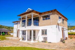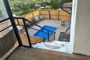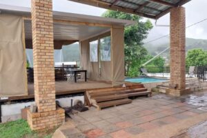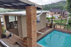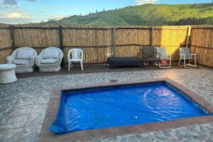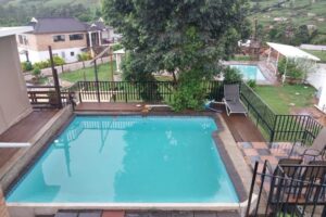 The Pholela House has FIVE (5) bedrooms, a communal bathroom, a lounge, a kitchen, a swimming pool and a deck
