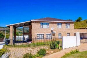 The Ndlunkulu House has SEVEN (7) bedrooms, a communal bathroom, a lounge, a kitchen, a swimming pool and a deck